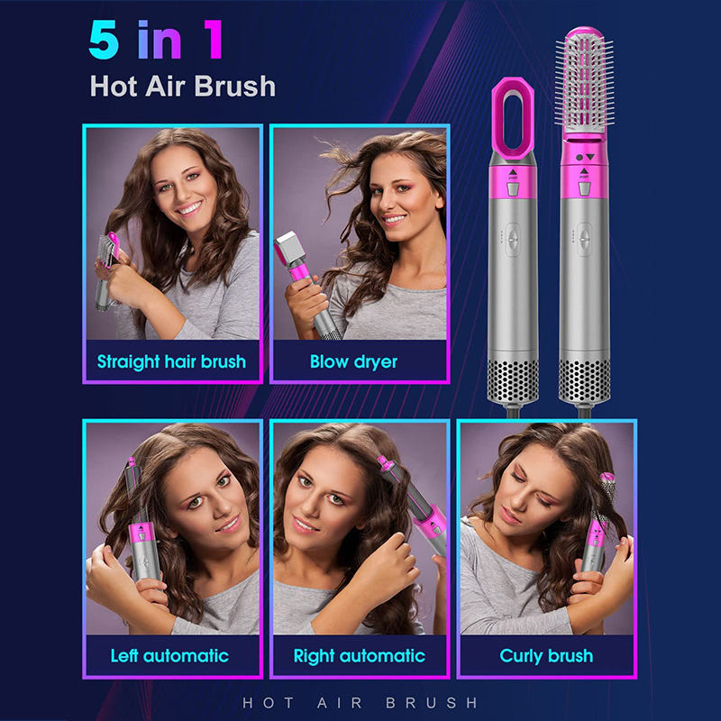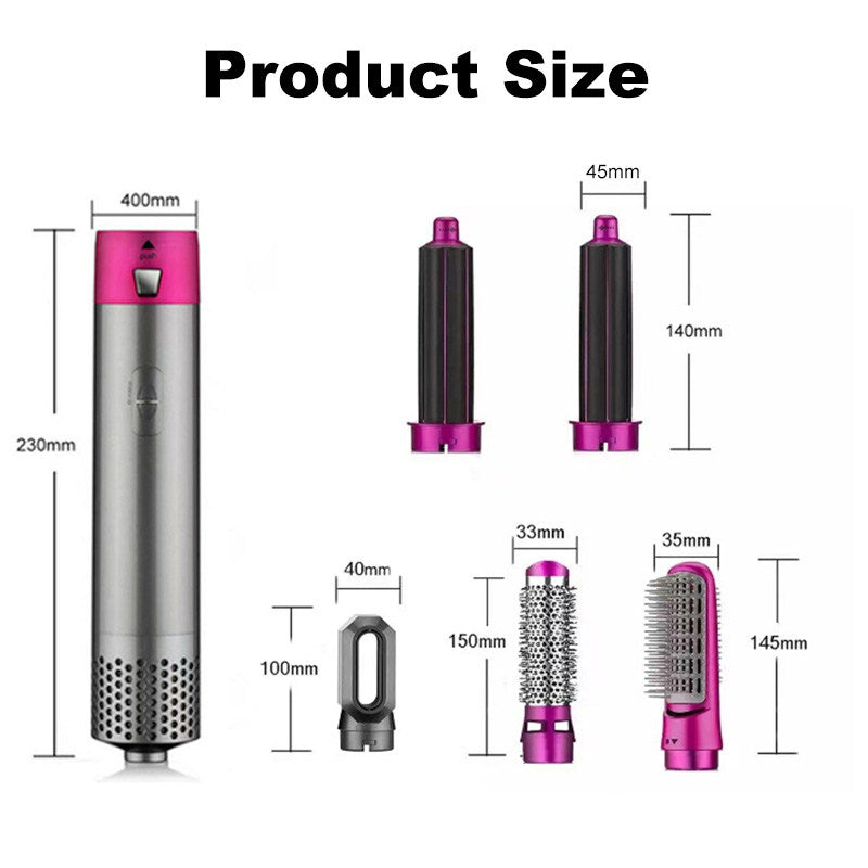 - 5 IN 1 hot air brush: This multi-function blow dryer brush has five interchangeable heads that allow you to create different styles while drying your hair. You can use it as a hair dryer, curling comb, straightening comb, left and right adsorption curling iron, and you can replace different brush heads with just one touch. Owning this hair dryer brush can meet your different needs, allowing you to easily create a salon effect at home.