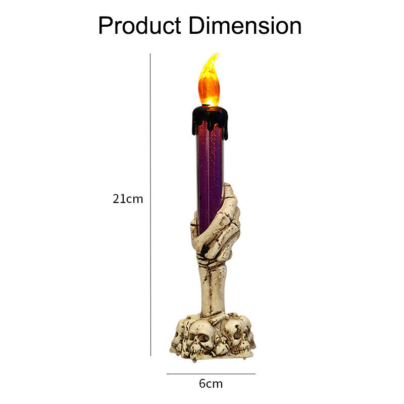 Good Quality: Made of high quality plastic, which is very strong and durable, can withstand all types of weather conditions. Perfect for indoor and outdoor Halloween decorations. The skeleton hands hold candles are very vivid and creating an eerie glow, a terrifying mood.