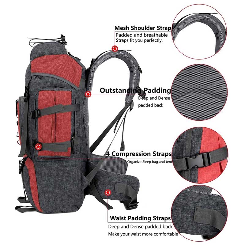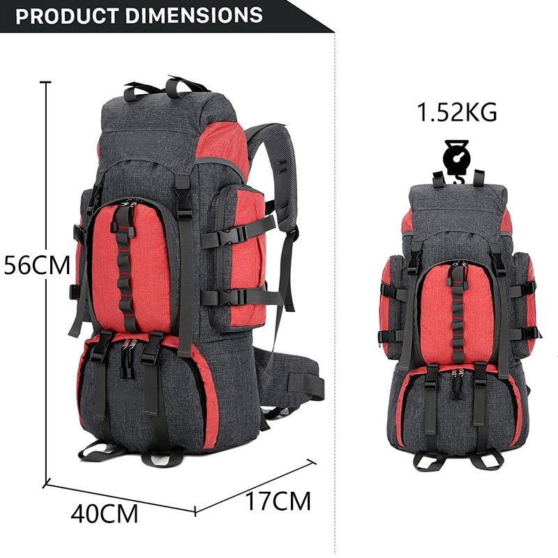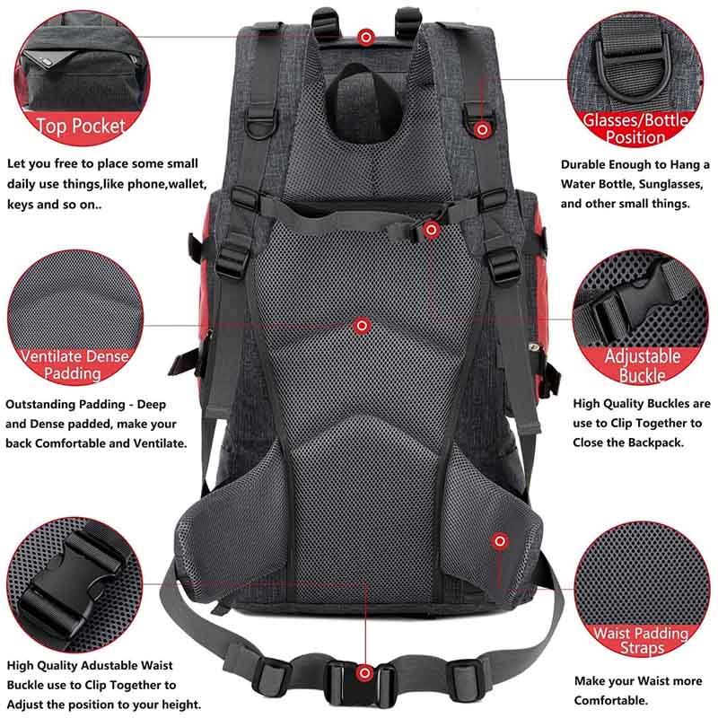 55L Backpack Internal Frame Hiking Water Resistant Travel Packs with Rain Cover-Red