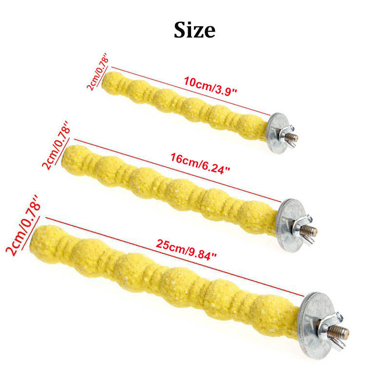 - For budgies, parakeets, cockatiels and other similarly sized birds. The rough surface is made of natural quartz sand and pure natural wood with food grade color inside.