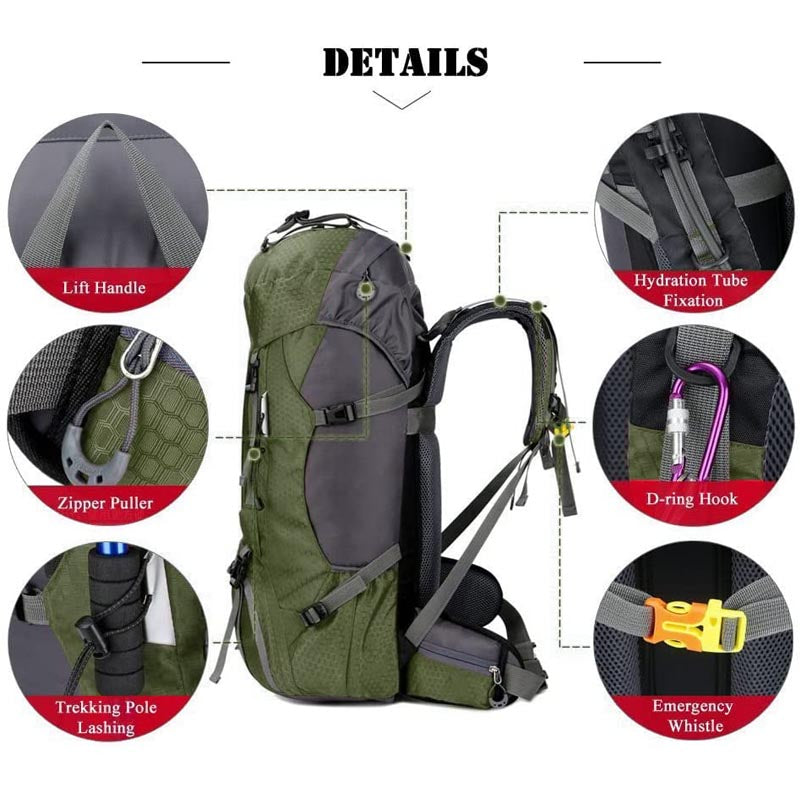 60L Waterproof Lightweight Hiking Backpack with Rain Cover for Climbing Camping-Army Green