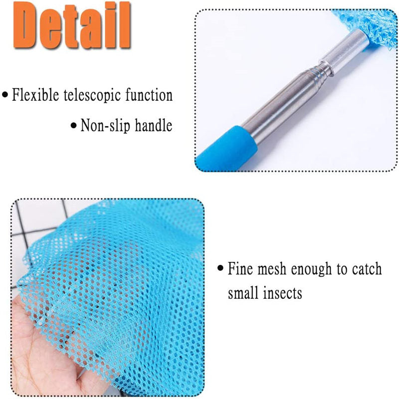 - Material: The colorful insect net is made of stainless steel telescopic rod and nylon mesh. Lightweight and durable, not easy to break. The soft handle makes it comfortable to hold.