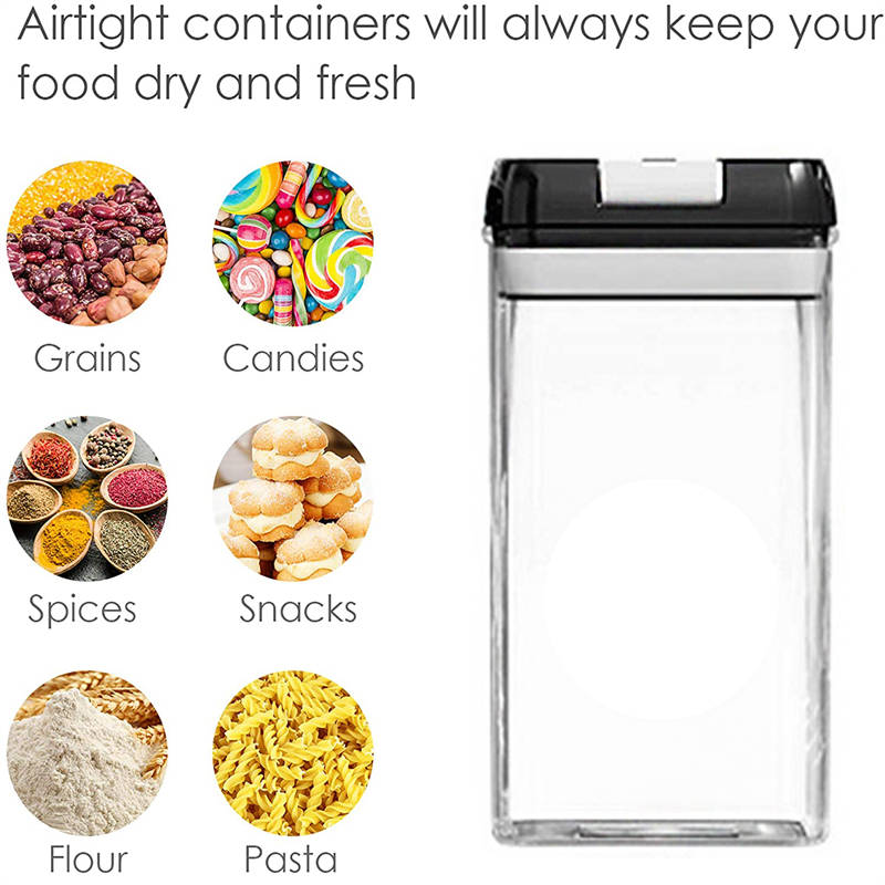 - Air-Tight to keep food dry and fresh----With special sealing mechanism, you can open or close our plastic containers safely by using only two fingers. Simply flip the ring to open or flip the ring down to lock and seal.