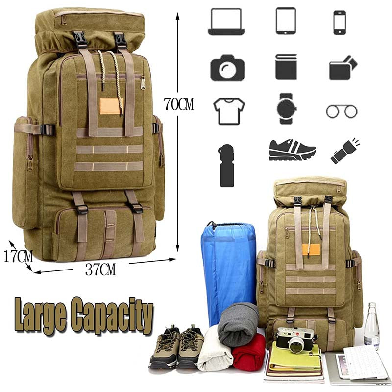 80L Outdoor Tactical Backpack Large Capacity Waterproof Backpack for Camping Hiking-ArmyGreen
