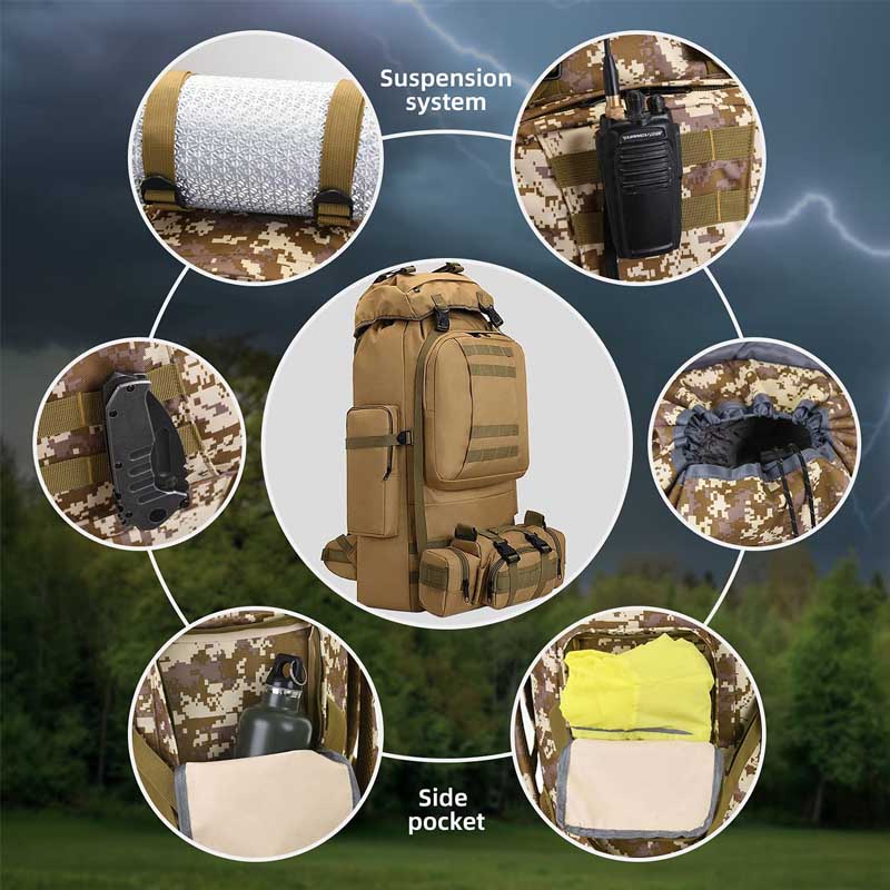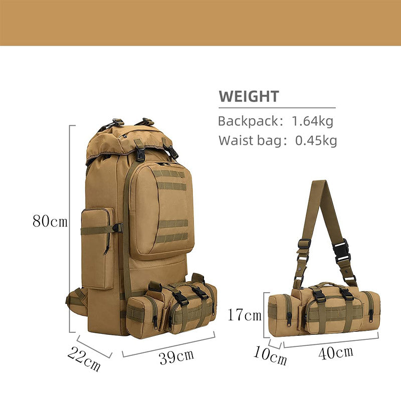 - Thickened Waterproof Fabric & Breathable Sponge Straps: Our 80L tactical backpack for hiking use upgraded thickened waterproof fabric and breathable mesh shoulder straps for tactical backpacks, sponge padding is more tough durable and comfortable than traditional mens hiking backpack. Waterproof military backpack. This military backpack for men shoulder straps is adjustablea, you could adjust the tightness according to your need.