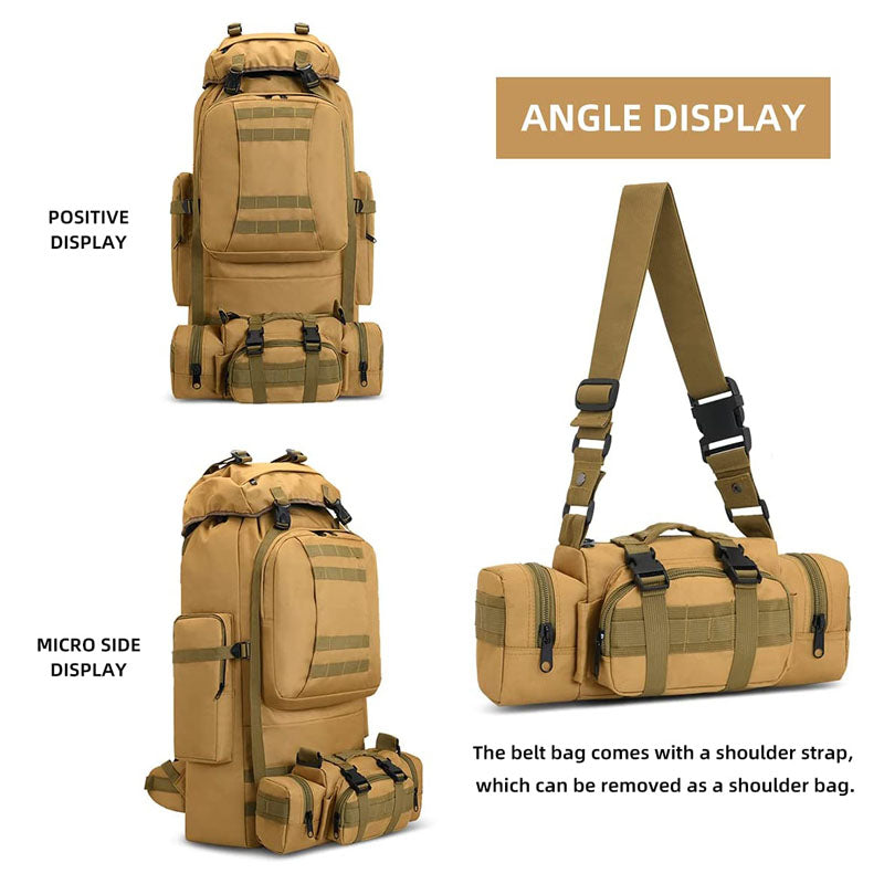 - 2-in-one Detachable Backpack Design: Large Backpack + independent waist bag.Independent waist bag that can be used as a shoulder bag or messenger bag.It is very convenient to carry,you can store some things you need at any time,like water,flashlight,Cell phone,Headphones,sunglasses,etc.