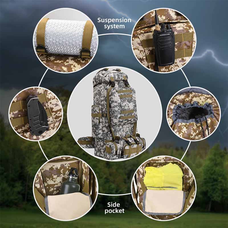 80L Waterproof 2-in-1 Detachable Backpack for Camping-Urban Camou