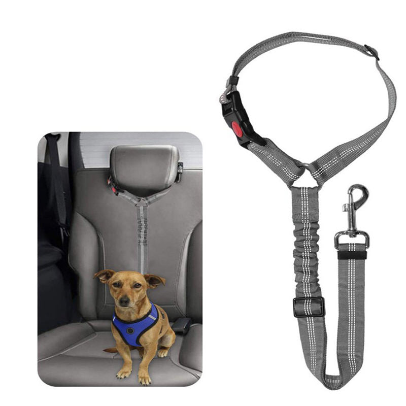 Dog Seat Belt Pet Car Seatbelt Headrest Restraint Adjustable Reflective Elastic Connect Dog Harness-DarkGrey