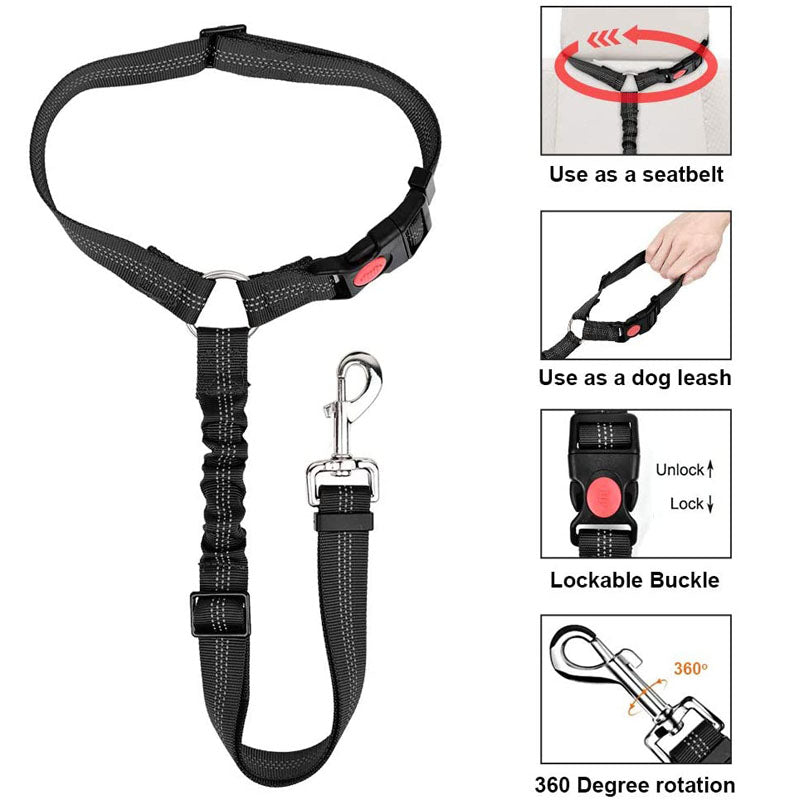 - Easy-to-use and multifunction --- pet car travel accessories can easily hang on the headrest,swivel metal snap connection dog chest strap,and is not recommended dog collars to ensure dog safety. It can also be used with the pet seat cover together. Not only is it a pet seat belt,is also a General purpose belt.