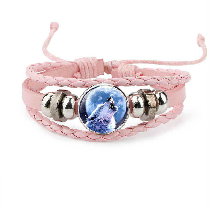 Adjustable Wolf Braided Leather Bracelet The Pretty Gifts for Women-Pink