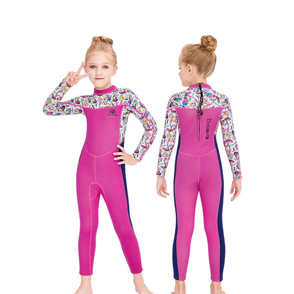 Adore 2.5MM Kids Thermal Wetsuit One-piece Thick Long Sleeve Swimsuit-M150558K-Rose Red