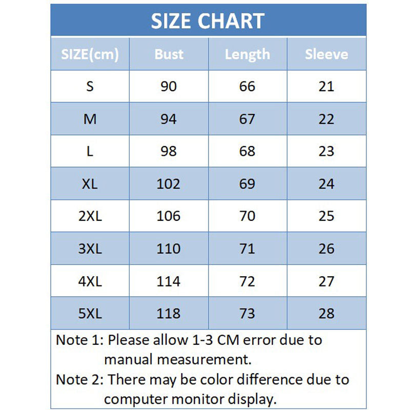 - Sizes: S, M, L, XL, 2XL, 3XL, 4XL, 5XL