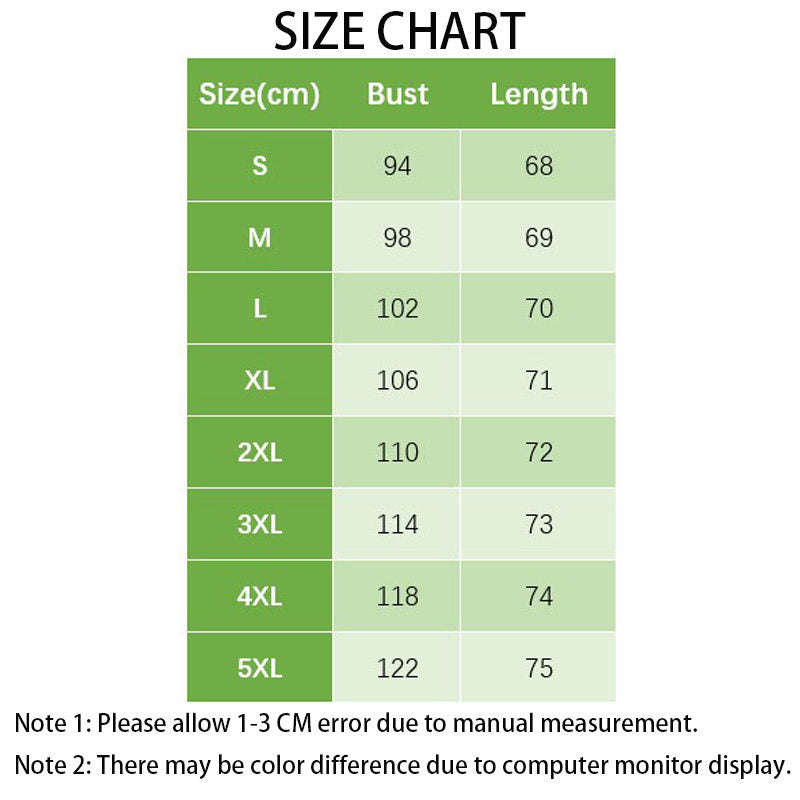 - Sizes: S, M, L, XL, 2XL, 3XL, 4XL, 5XL