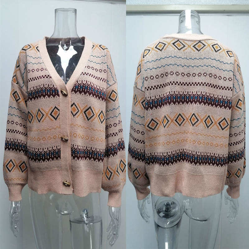 Womens Casual Loose V Neck Knit Sweater Jacket-Pink