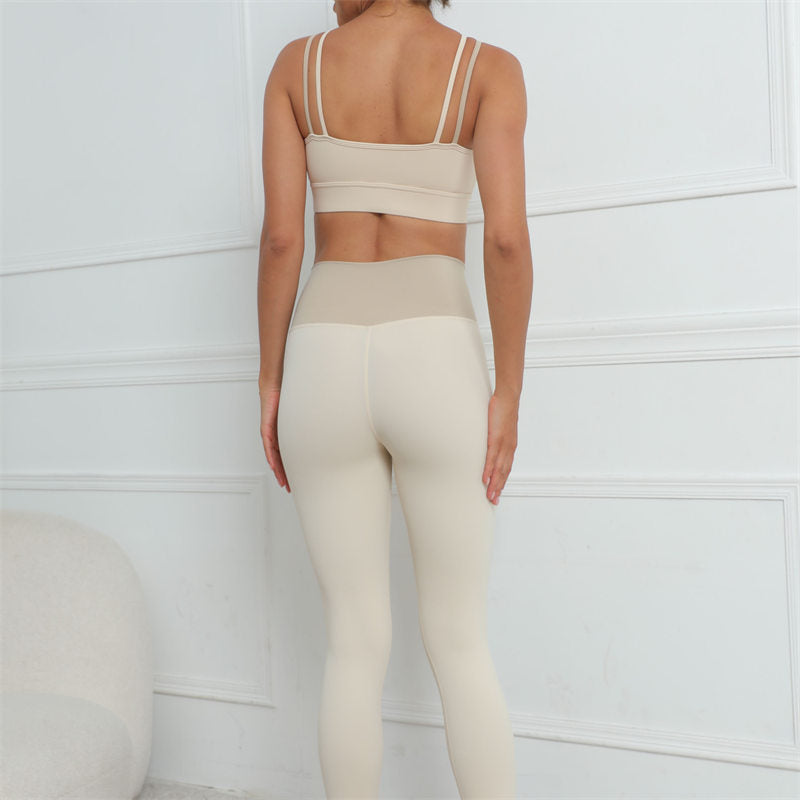 Womens Color Block Hip Lift Fitness Suit Sports Underwear and Yoga Trousers-Khaki