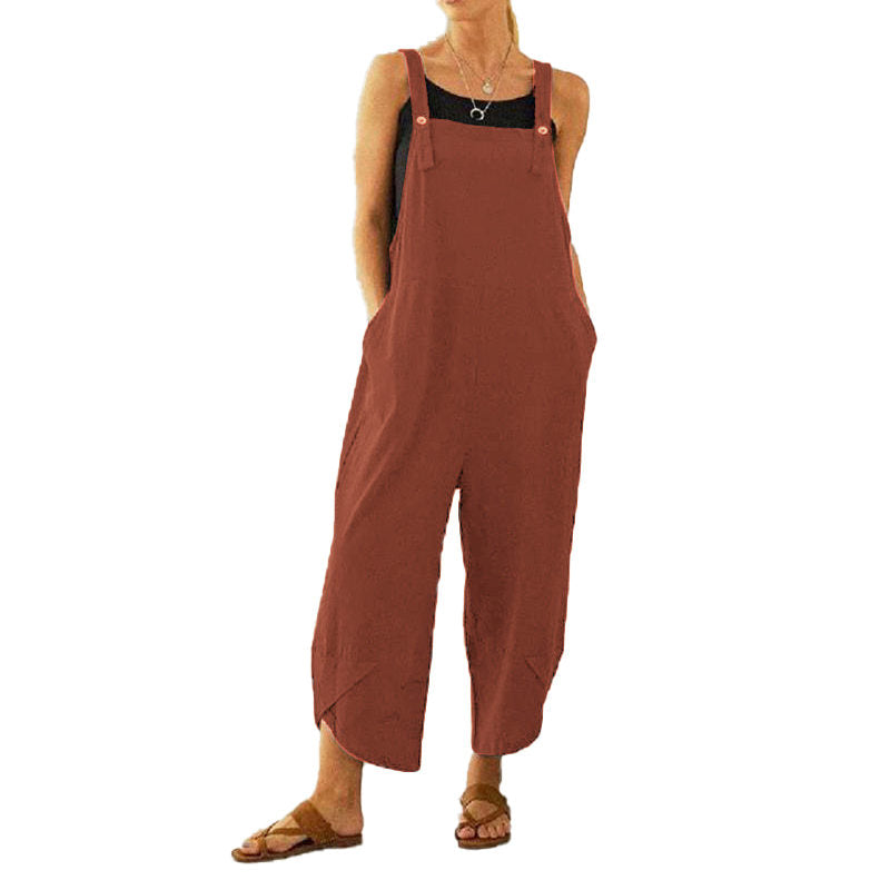 Womens Cotton Adjustable Casual Summer Bib Overalls Jumpsuits with Pockets-Red