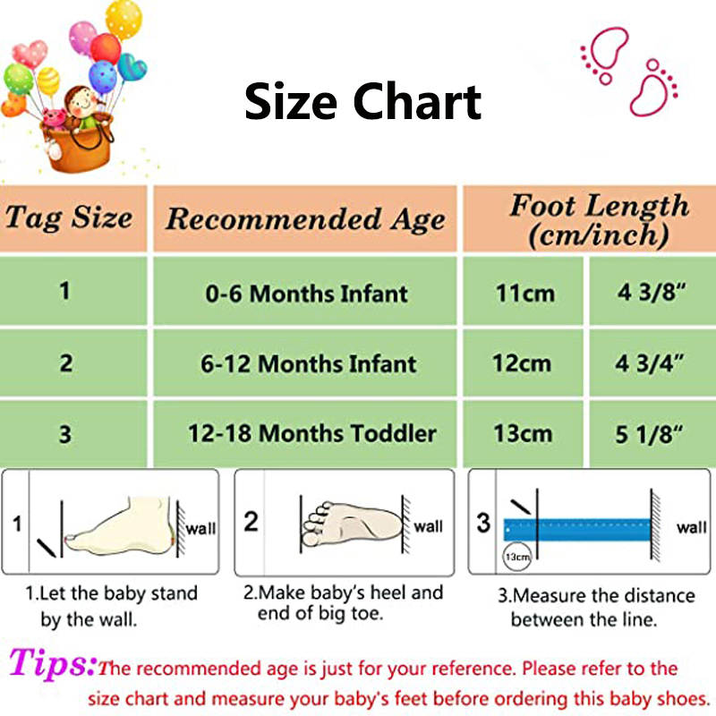 - Please refer to the shoe size chart in the picture before buying shoes to get the correct size. Since the dimensions are manually measured, there may be some errors. Please measure the length of your child's feet to get the best fit. Due to the different display and lighting effects of the monitor, the picture may not reflect the actual color.