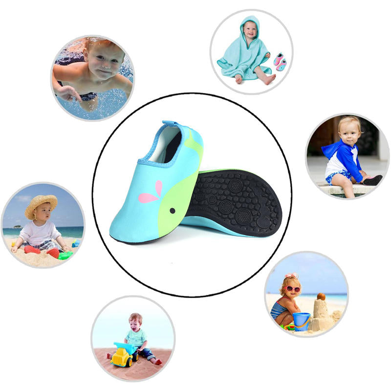 - Slip-resistant and quick-drying: The non-slip rubber sole is flexible, which can protect your feet from stepping on rocks and stones, and the neoprene fabric allows children's water swimming shoes to dry quickly.