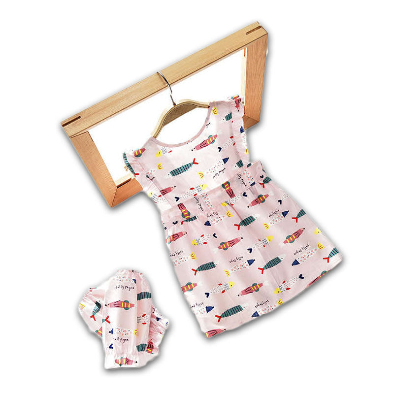 Baby Girl Waterproof Dress Bibs With 2 sleeves Covers-Pink Fish