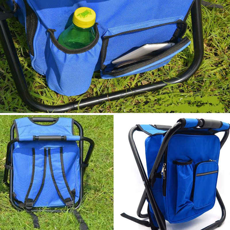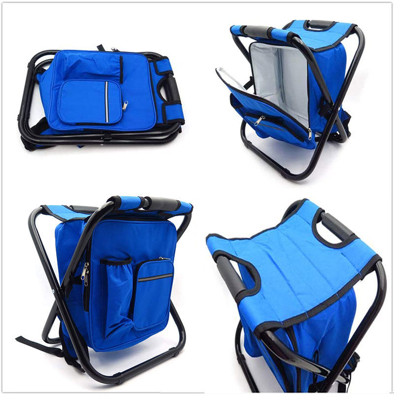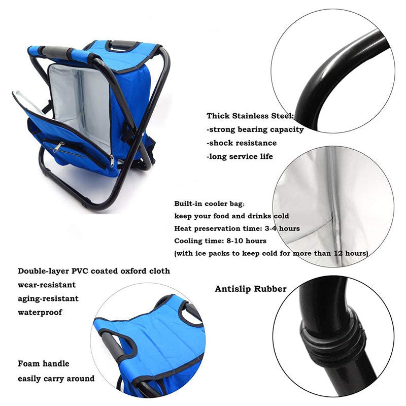 Backpack Cooler Chair Folding Camping Stool for Travel Fishing-Blue