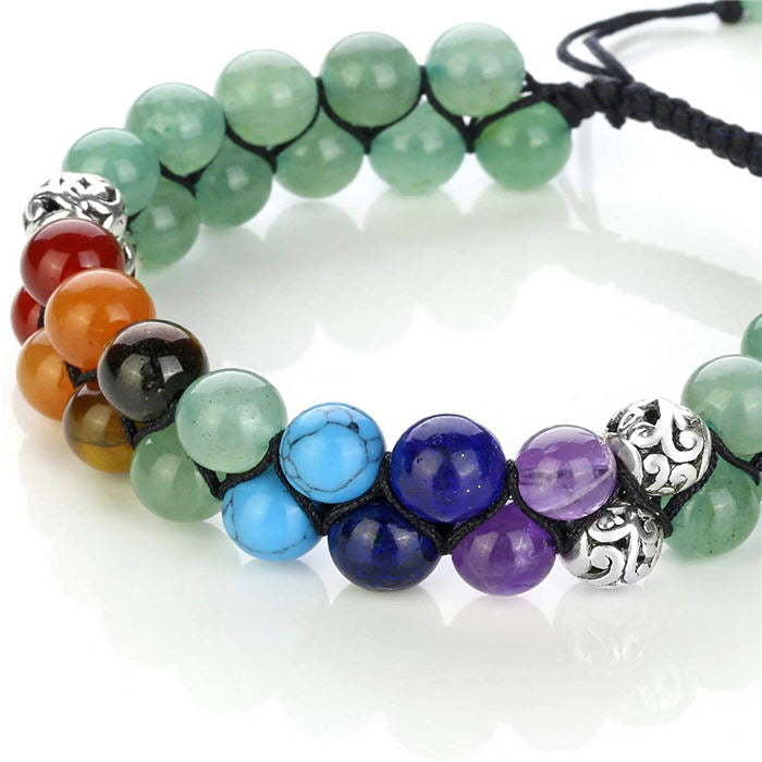Bead Bracelet 7 Chakras Healing Crystals Bracelet Stone Beads Double Layer Bracelets-Green