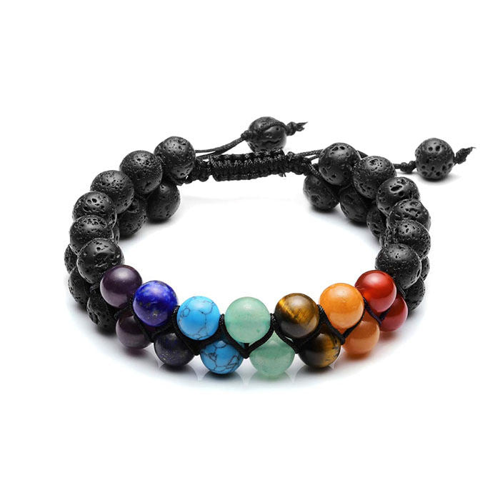 Bead Bracelet 7 Chakras Healing Crystals Bracelet Stone Beads Double Layer Bracelets-Lava Rock Stone Bracelet