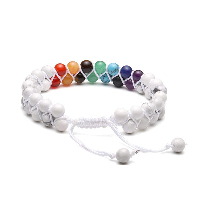 Bead Bracelet 7 Chakras Healing Crystals Bracelet Stone Beads Double Layer Bracelets-White