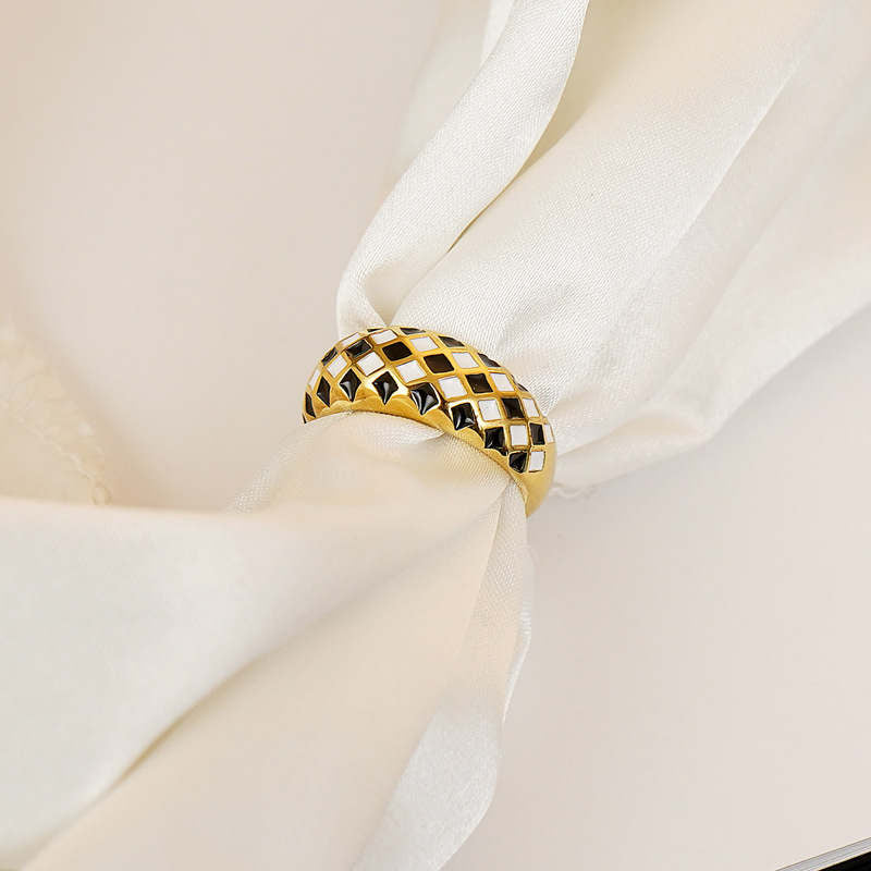 - The pattern of the checkerboard ring is composed of many black and white squares, it looks unique and personal, stylish yet classic, adorn your fingers! These delicate rings can be perfectly matched with any outfit, making you more elegant and gorgeous .