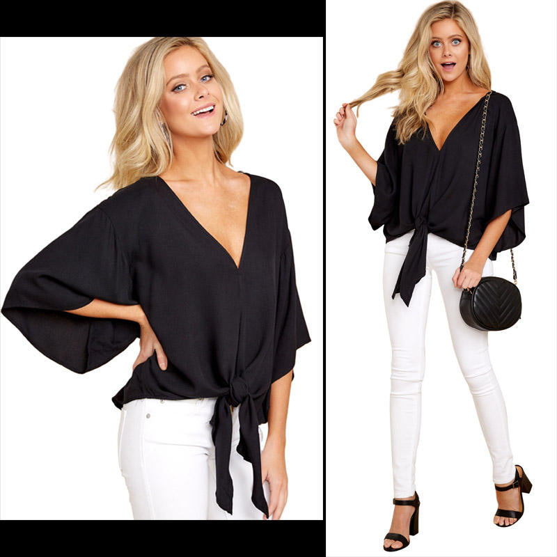 - Unique Design: Sexy deep v neckline, 3/4 batwing sleeve, tie knot front tops for women, loose fit womens tops and blouses. Casual style and loose fitting.