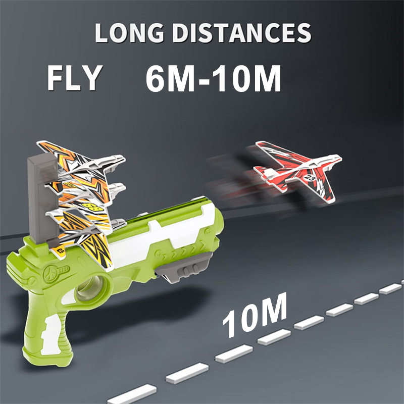 - Powerful Shooting Flight Range: This aircraft gun toy can shoot gliders from 6M to 10M, which is enough for kids to play indoors or outdoors.