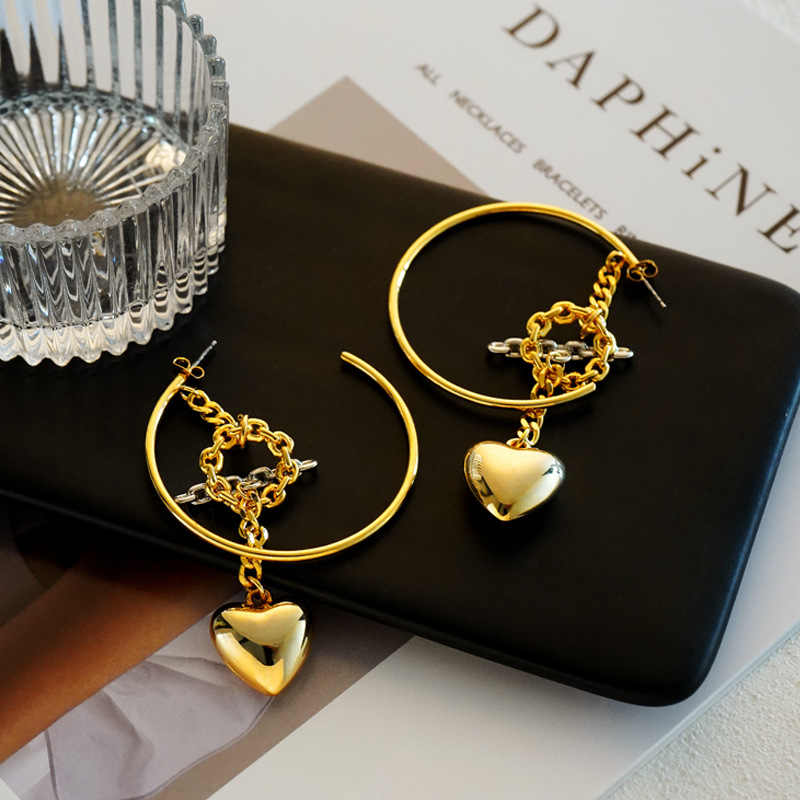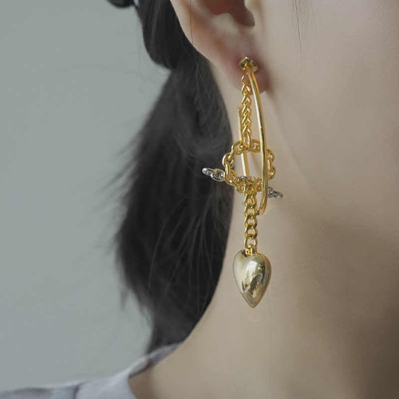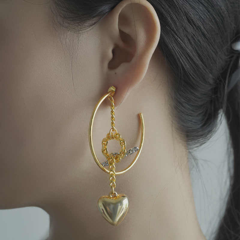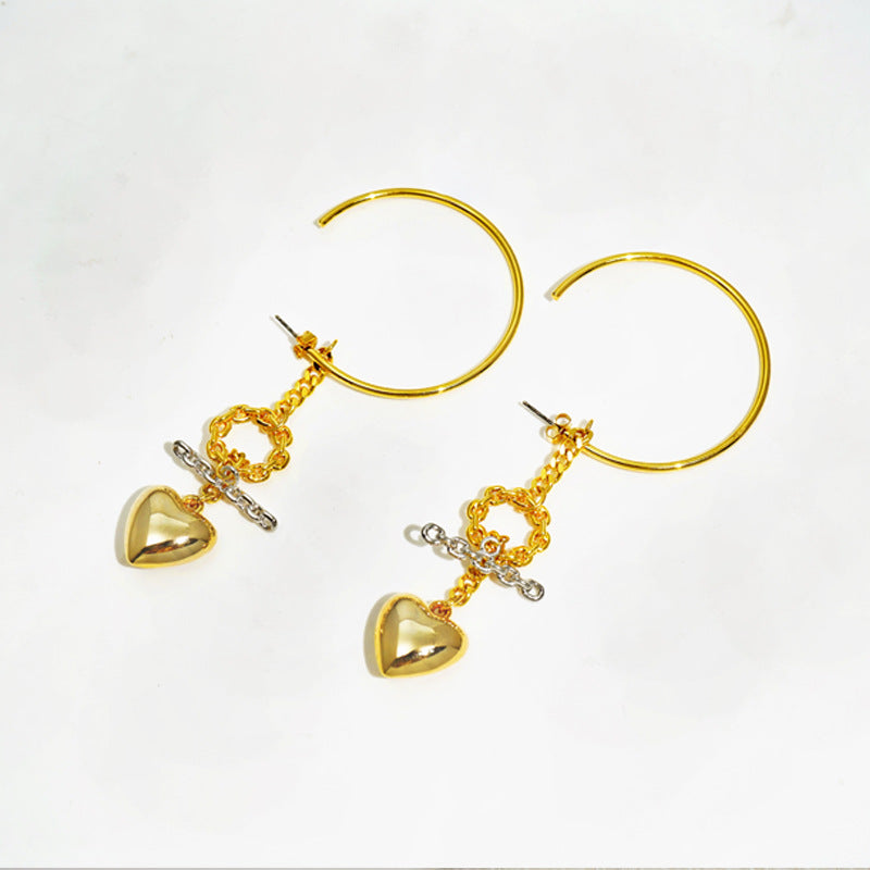 C-shaped Chain Earrings Love Pendant Two Tone Earrings