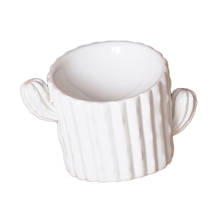 Cactus Elevated Ceramic Pet Bowls Tilted for Cats and Small Dogs Double Branch-White