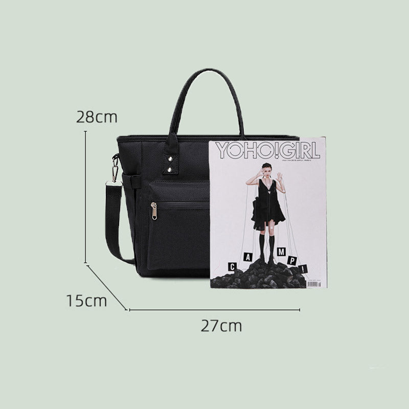 Casual Crossbody Bento Lunch Bag Insulated Multiple Pockets Tote Bag-Black
