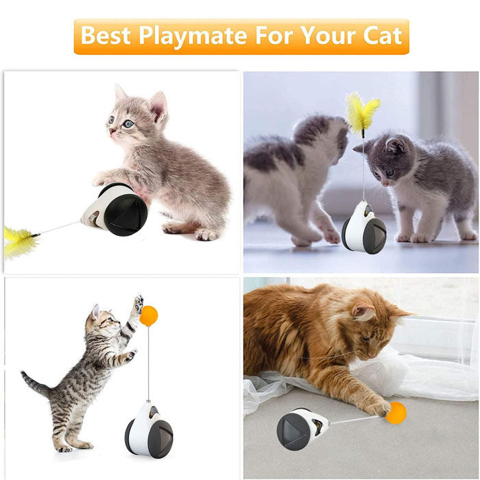 Cat Balance Swing Car Toy with Catnip Ball Feather Stick Interactive Pet Toys-Black