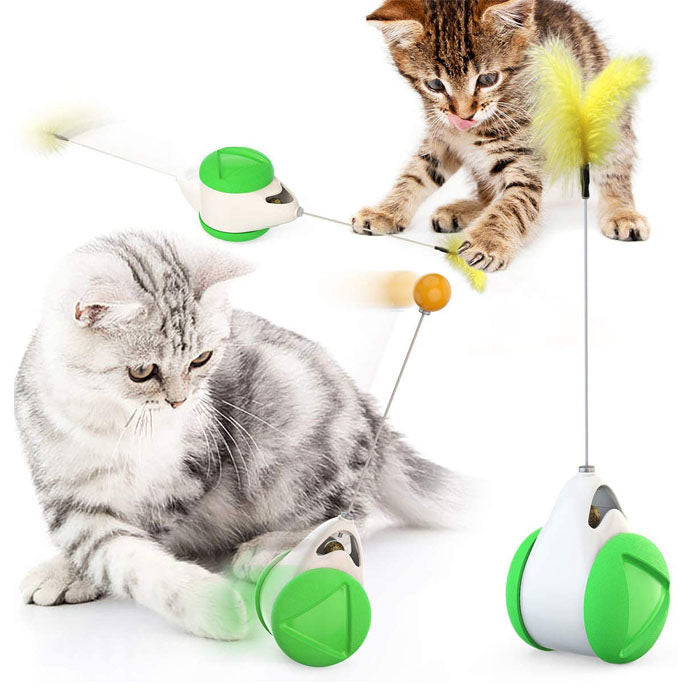 Cat Balance Swing Car Toy with Catnip Ball Feather Stick Interactive Pet Toys-Green