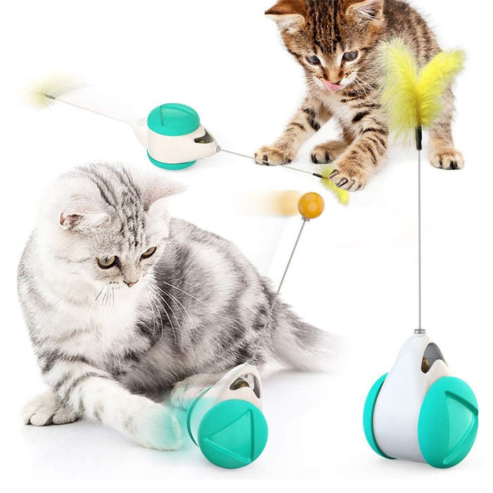 Cat Balance Swing Car Toy with Catnip Ball Feather Stick Interactive Pet Toys-Lake Blue