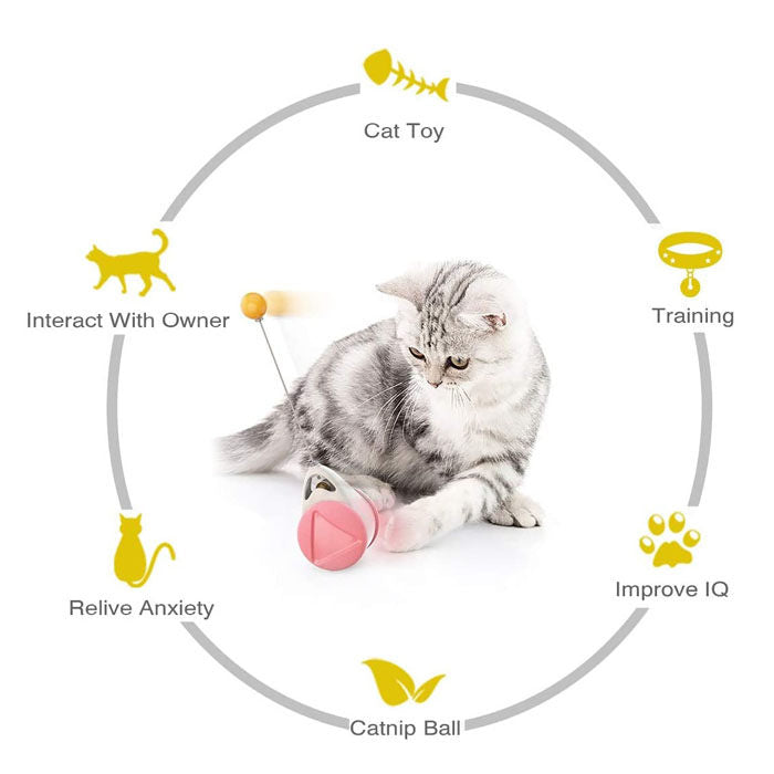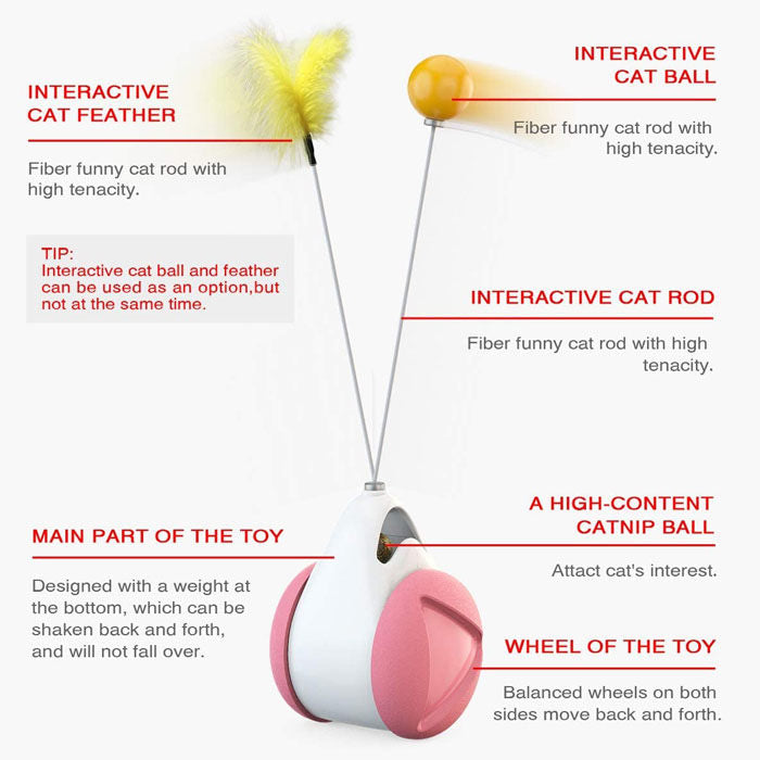 Cat Balance Swing Car Toy with Catnip Ball Feather Stick Interactive Pet Toys-Pink