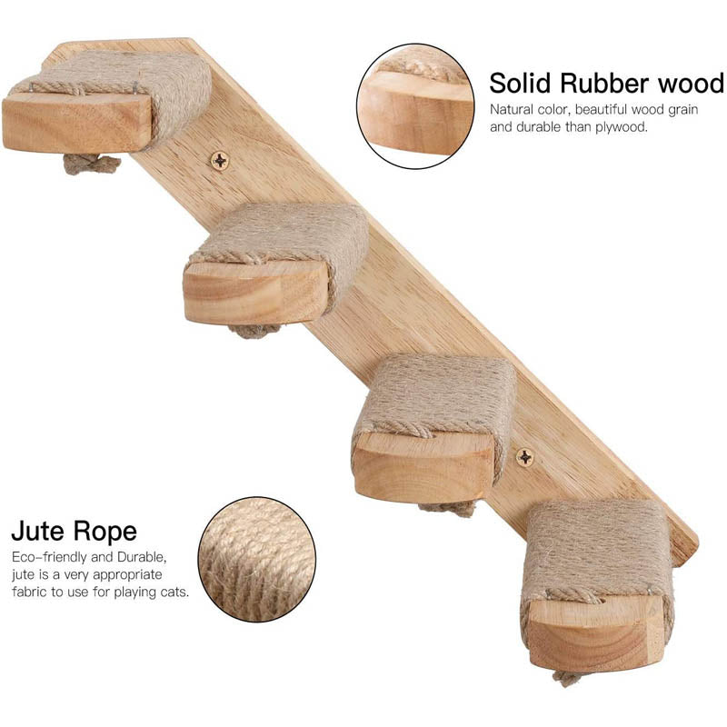 - Durable and bearable to play: Our beautiful shelves are made of rubber wood + sisal. Using our shelves, you can rest assured that your cat is safe while playing. Because of natural wood, each piece has subtle differences.