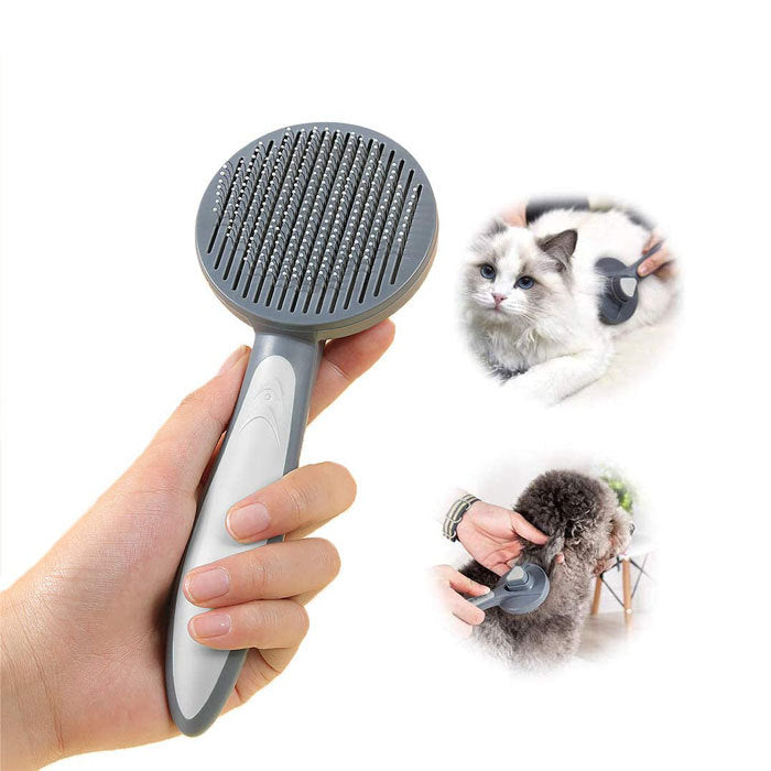 Cat Dog Grooming Brush Pet Self Cleaning Shedding Massage Combs-Gray
