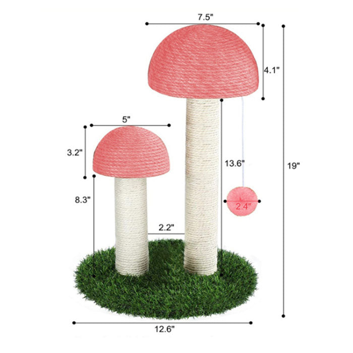 Cat Scratching Post Mushroom Durable Sisal Board with Dangling Ball-Pink