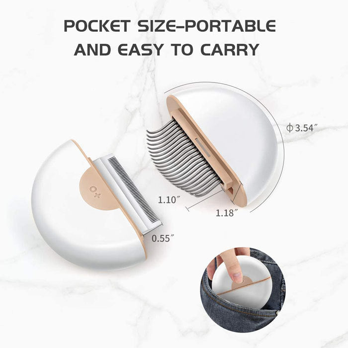 - This cat hair brush combines two functions into a small comb inside, you can put it easily in your bag. It is easy to keep the hair nice after use, and non-slip circular handle is soft and comfortable for you to grip.