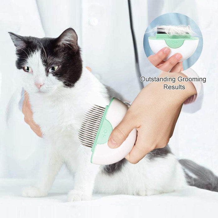- This cat hair brush combines two functions into a small comb inside, you can put it easily in your bag. It is easy to keep the hair nice after use, and non-slip circular handle is soft and comfortable for you to grip.