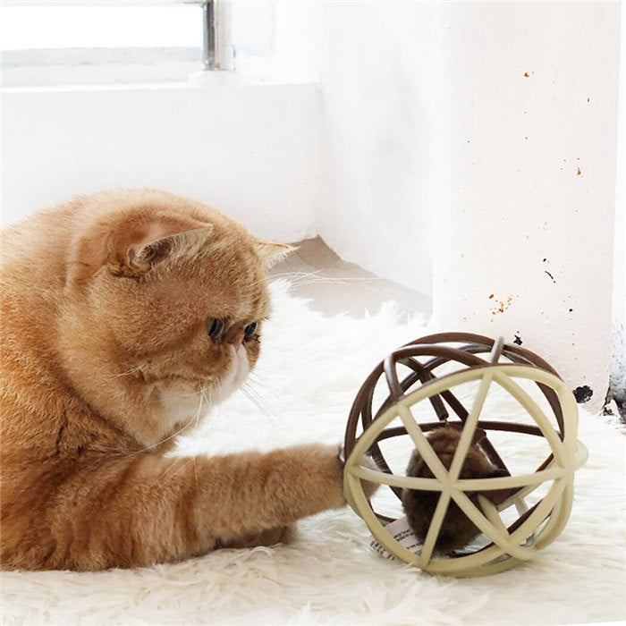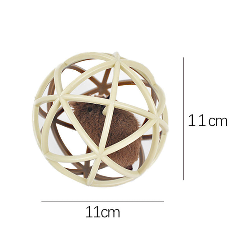 Cat Toy Ball Interactive Squeak Mouse Cage Toy-Rice Coffee