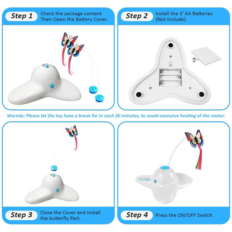 - 2 butterfly refills: The automatic cat toy provides 2 replacement butterflies, which can prevent scratches and bites, and prevent cats from scratches or accidental damage.