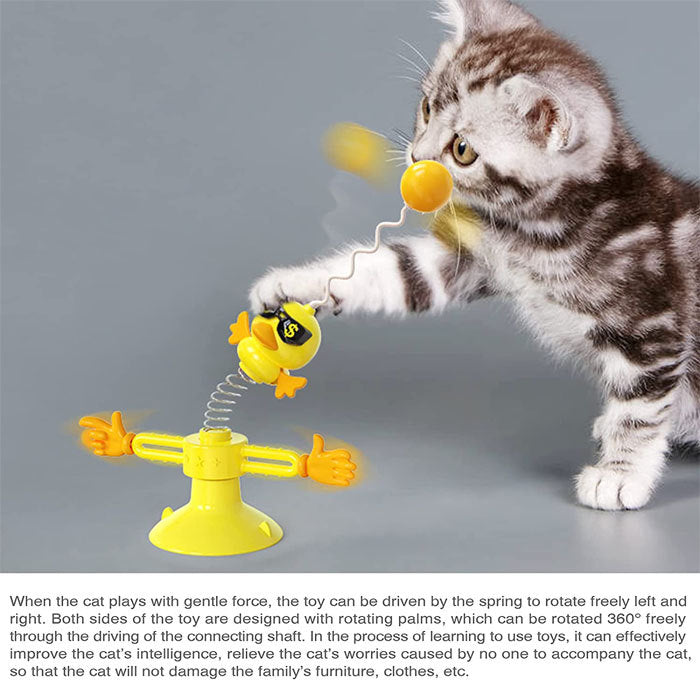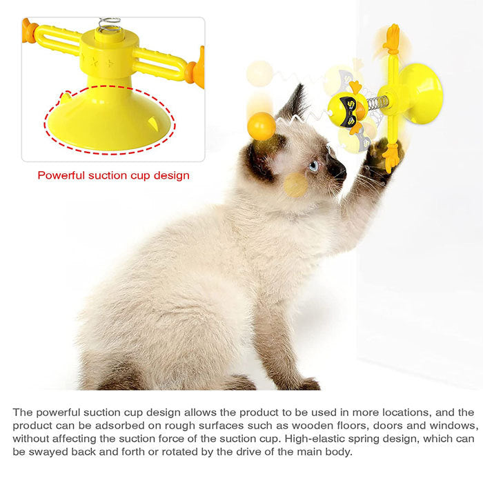 - Middle side with spring ball, and rotating design which is more attractive for cats. The suction cup at the bottom of the cat toy can fix the toy on the ground or on the wall.