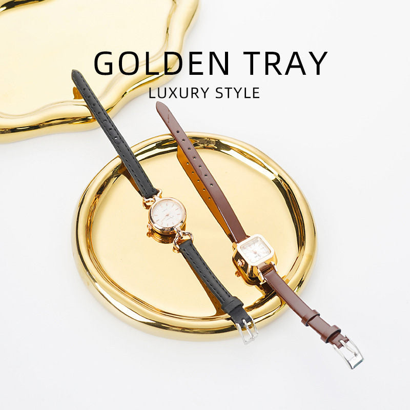 Ceramic Jewelry Tray for Ring Key Trinket Round Shape Small Plate-Gold