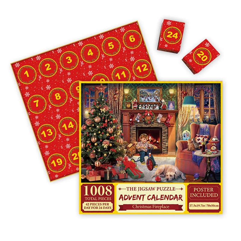 - Countdown Calendar Puzzle: Unique festive puzzle contains 24 boxes with 1008 Christmas pieces. You need to complete a part of this puzzle every day from 1 December to 24 December.