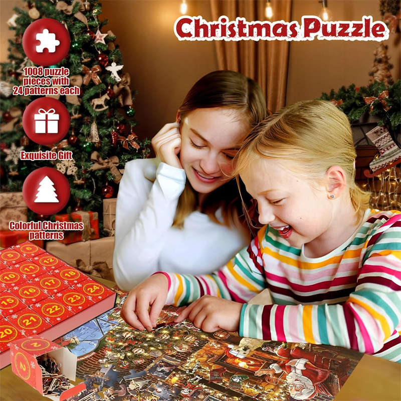 - Countdown Calendar Puzzle: Unique festive puzzle contains 24 boxes with 1008 Christmas pieces. You need to complete a part of this puzzle every day from 1 December to 24 December.