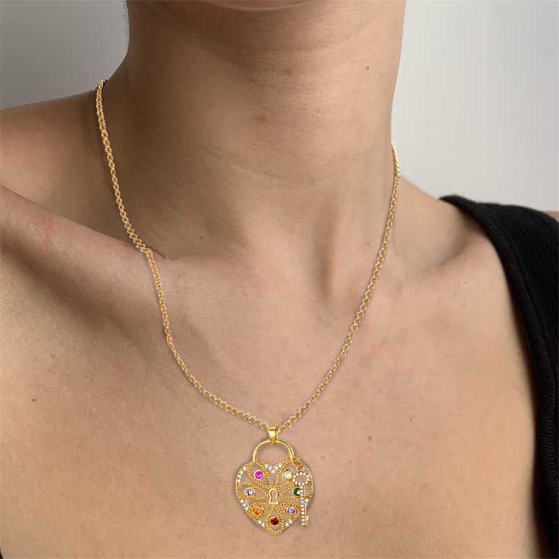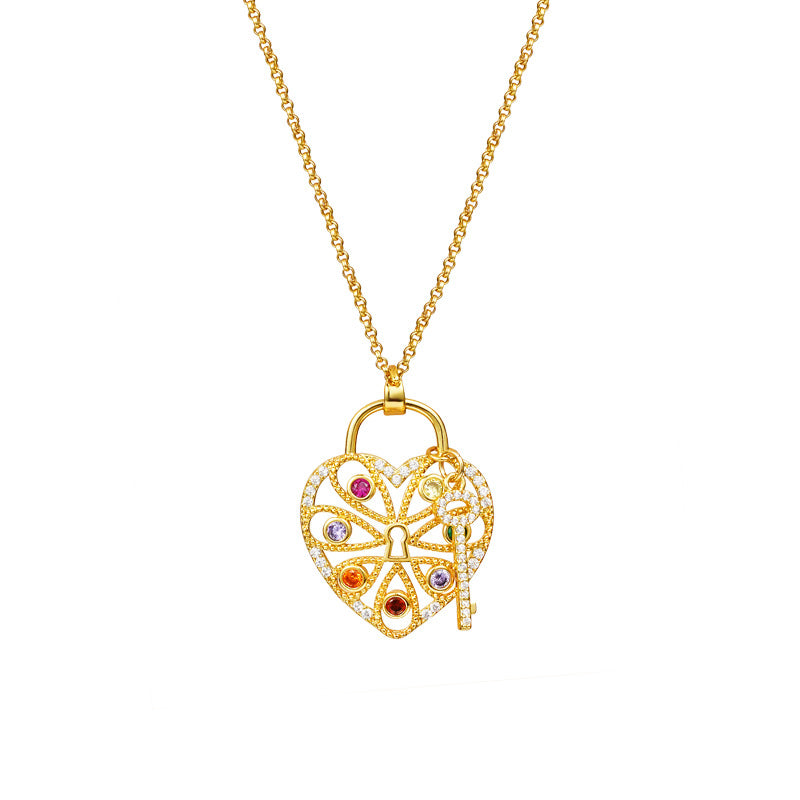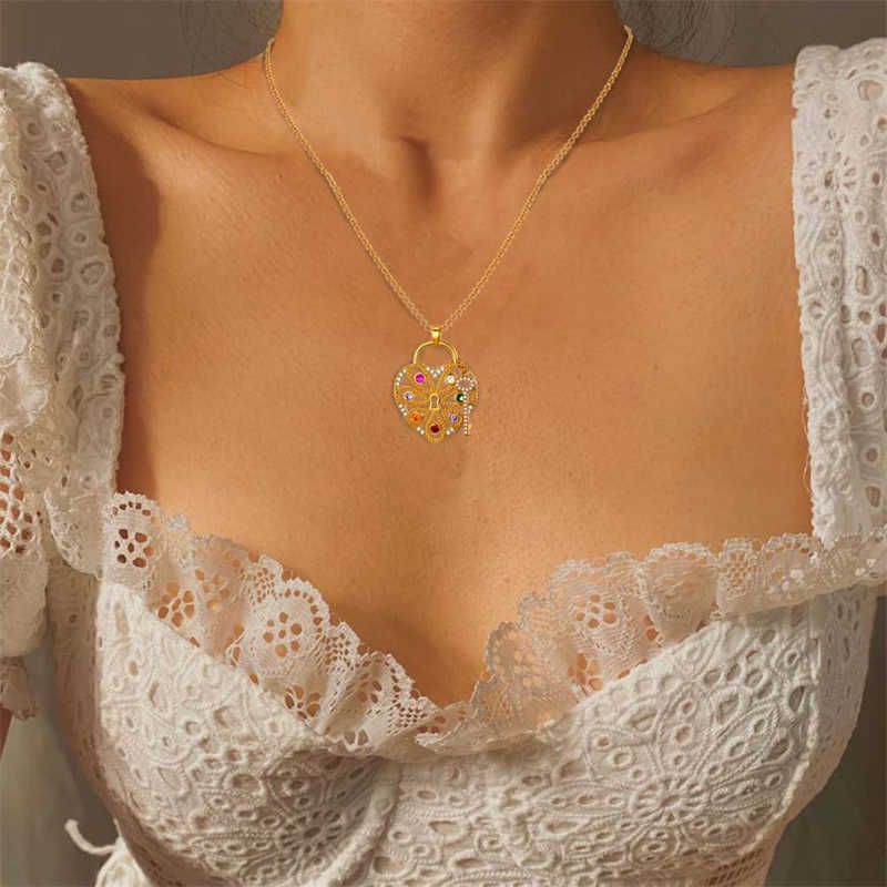 Colorful Heart Lock And Key Pendant Necklace For Women Girls