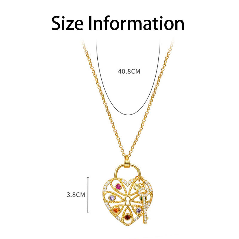 - The heart pendant is designed with lock hole in the center,and surrounded by several colorful crystals, meanwhile, a tiny key is attached on the front,all of that proves it is a unique heart necklace.